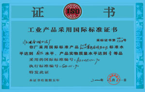 產(chǎn)品國際標(biāo)準(zhǔn)證書
